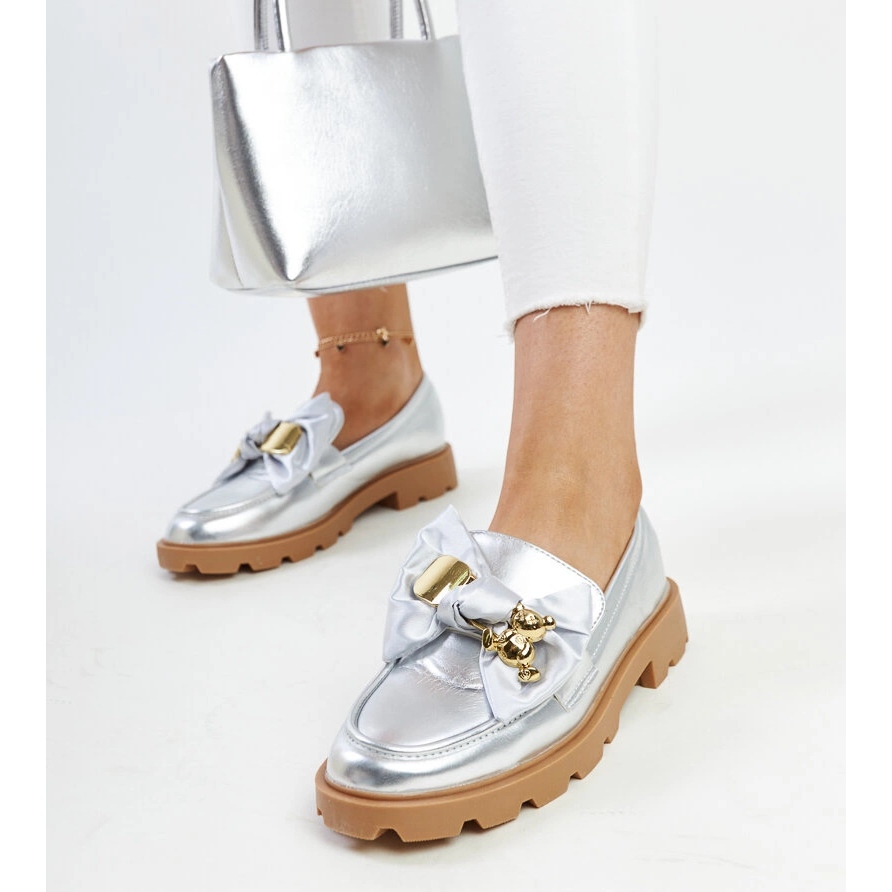 Détails: Mocassins argentés avec épingle de sûreté décorative par Bogumil