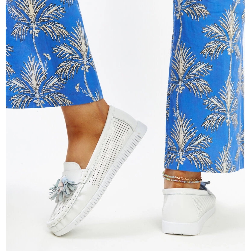 Les mocassins se distinguent par un nez classique et des amandes et des franges subtiles qui leur donnent un charme féminin. Fabriqués en cuir naturel de la plus haute qualité, ils offrent une excellente ventilation et plaisir de porter, et leurs couleurs blanches les rendent extrêmement polyvalentes - parfaites au printemps et en été.