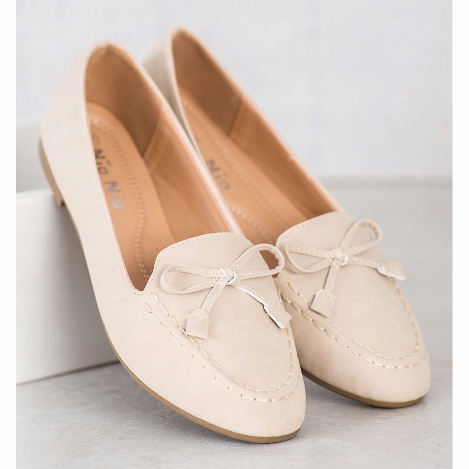 Nous vous présentons des mocassins beiges confortables de la marque Nio Nio, parfaits pour la prochaine saison printemps et été. Fabriquées en éco-cuir de haute qualité, ces chaussures plates pour femmes allient confort et élégance. La couleur beige et le nœud délicat leur ajoutent du charme, ce qui en fait un complément parfait à de nombreux styles.