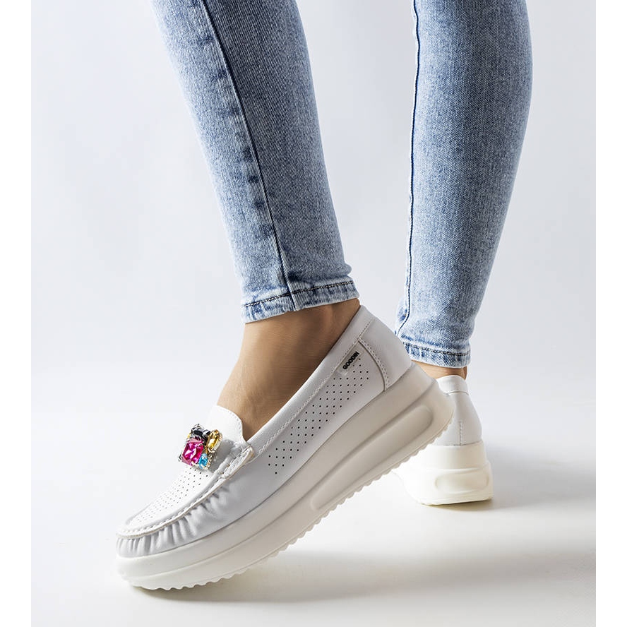 Découvrez l'essence de l'élégance et du confort avec les mocassins blancs Gisella avec cristaux. Ce modèle unique, proposé par un fabricant alternatif du segment des chaussures pour femmes, combine la forme classique des mocassins avec une touche de glamour, grâce à de subtils strass qui ajoutent brillance et charme à chaque pas.