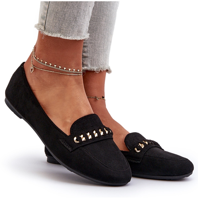 Découvrez l'élégance et la commodité dans l'un des modèles de mocassins féminins brillants avec la chaîne Black Aredilla. Ces mocassins uniques, en daim eco de haute qualité, sont non seulement élégants, mais aussi extrêmement confortables grâce à la semelle intérieure douce, qui garantit le confort de porter toute la journée.