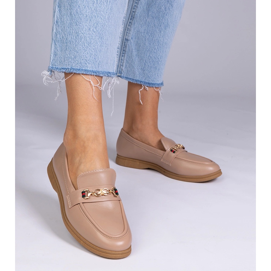 Découvrez votre nouvelle passion pour l'élégance et le confort avec des mocassins bruns avec une décoration dorée! Ces chaussures kaki classiques sont le choix parfait pour chaque femme qui veut combiner le style et le confort dans les stylisations de tous les jours.