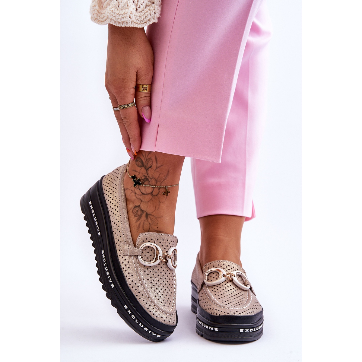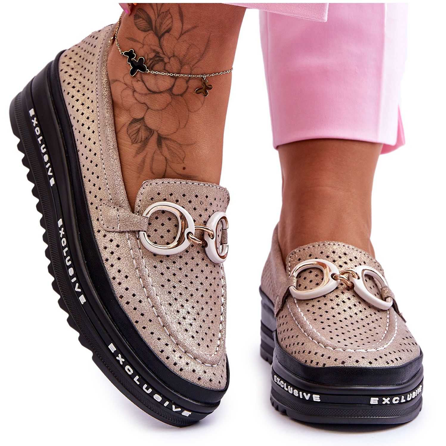 Découvrez l'élégance et le confort offerts par les mocassins classiques en cuir ajouré S.Barski dans un coloris doré très tendance. Ces chaussures pour femmes extrêmement élégantes sont soigneusement fabriquées en cuir naturel de haute qualité, ce qui garantit non seulement la durabilité mais aussi le confort de port. Le motif ajouré de la tige leur confère un caractère moderne, ce qui en fait un choix idéal pour diverses occasions.