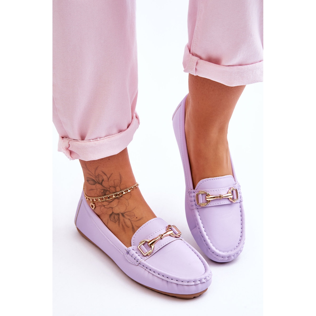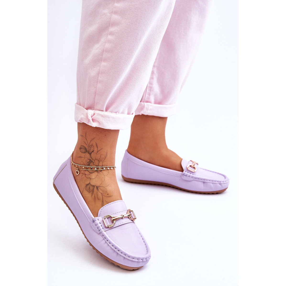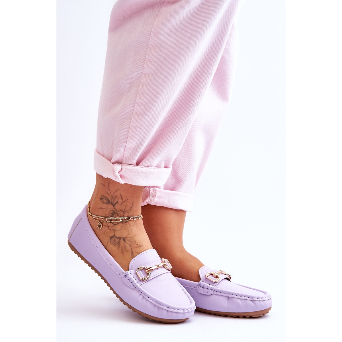 Les mocassins sont équipés d'un insert en cuir écologique souple, assurant un confort de port tout au long de la journée. Le devant décoré de strass élégants leur confère un caractère unique, et la délicate plateforme de 1,5 cm de haut les rend extrêmement confortables à porter. De plus, leur bout rond et l'absence de talon assurent liberté de mouvement et stabilité.