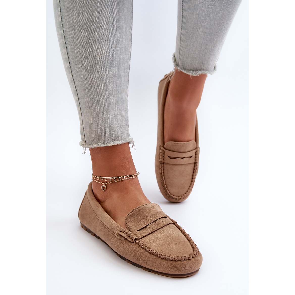 Découvrez l'élégance et la commodité des mocassins féminins classiques du daim dans une nuance de glimris beige sombre. C'est un excellent choix pour chaque femme qui valorise non seulement un look à la mode, mais aussi le confort de porter. Les chaussures en daim écologique à l'avant sont décorées d'une ceinture subtile, ce qui lui donne un charme spécial de la première classe.