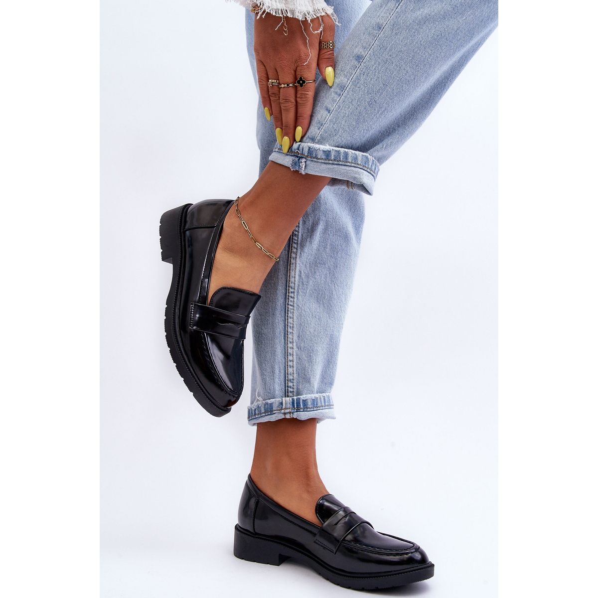 Les mocassins sont disponibles dans une couleur noire classique, ce qui en fait un élément très universel de toute garde-robe. Elles ont un bout rond et leur semelle est en plastique, ce qui assure une meilleure adhérence.