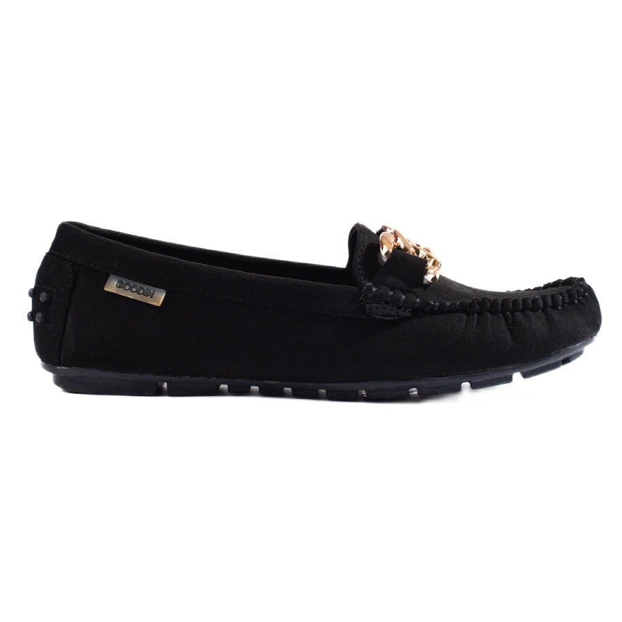 Locs féminins classiques Shelovet - noir, élégant et confortable. La forme universelle de l'édition classique signifie que le modèle de la collection Keeshoes est idéal pour une base quotidienne et plus solennelle. Une chaîne métallique discrète ajoute du caractère, mettant l'accent sur le style élégant et décontracté.