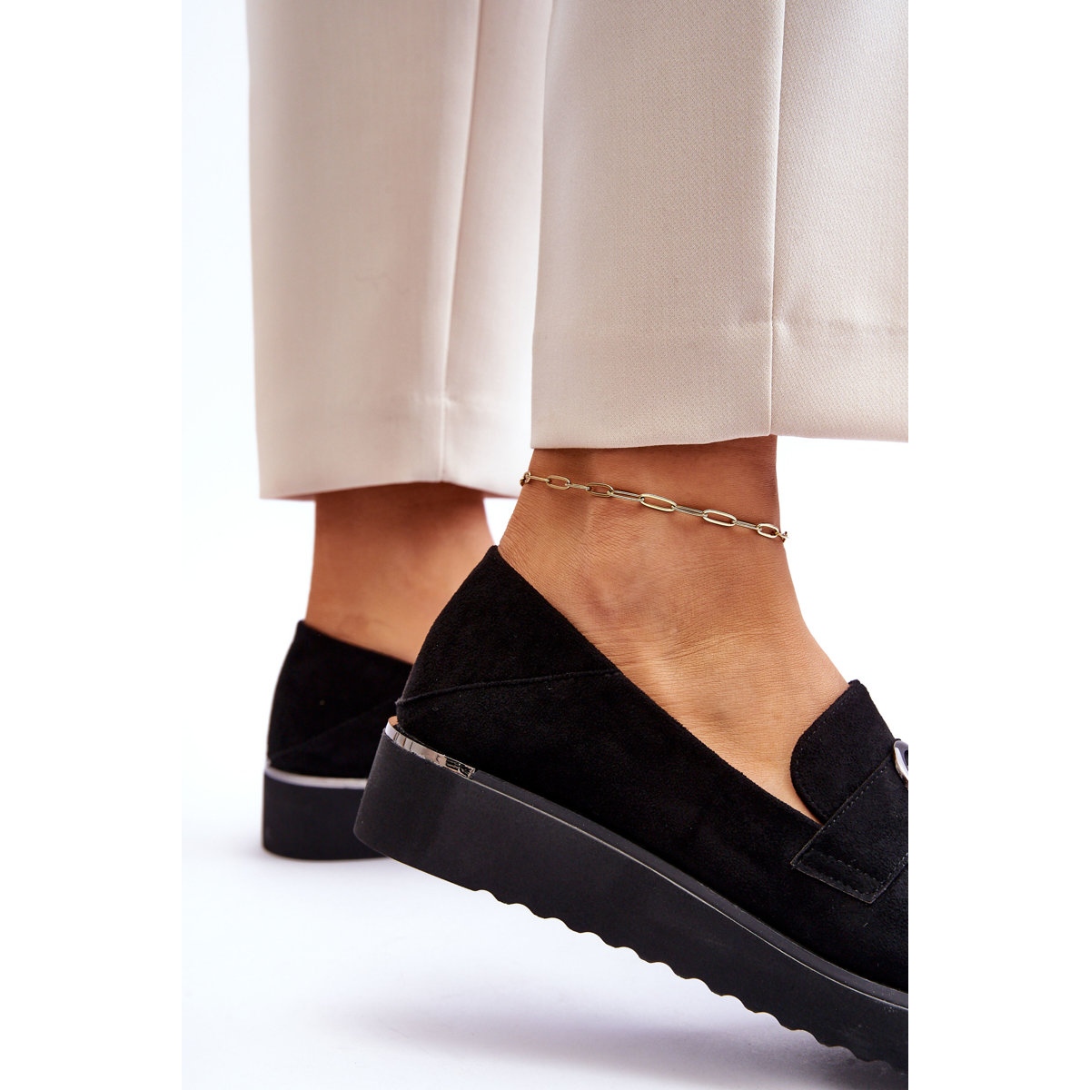 Détails: Vinceza Mocassins compensés bas en daim pour femme Noir Synthia le noir