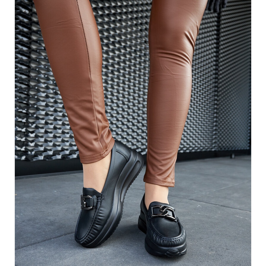 Moccasins de coin noir avec une boucle vigo - élégance et confort pour l'été