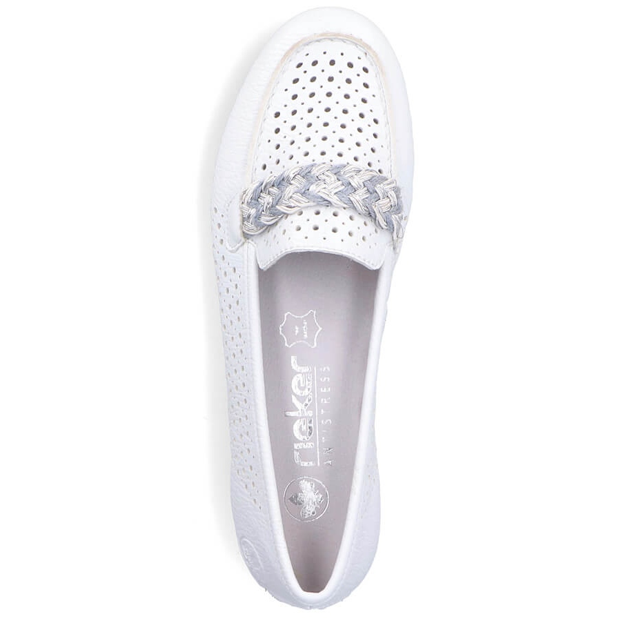 Détails: Mocassins confortables ajourés pour femmes, blanc Rieker 46885-80