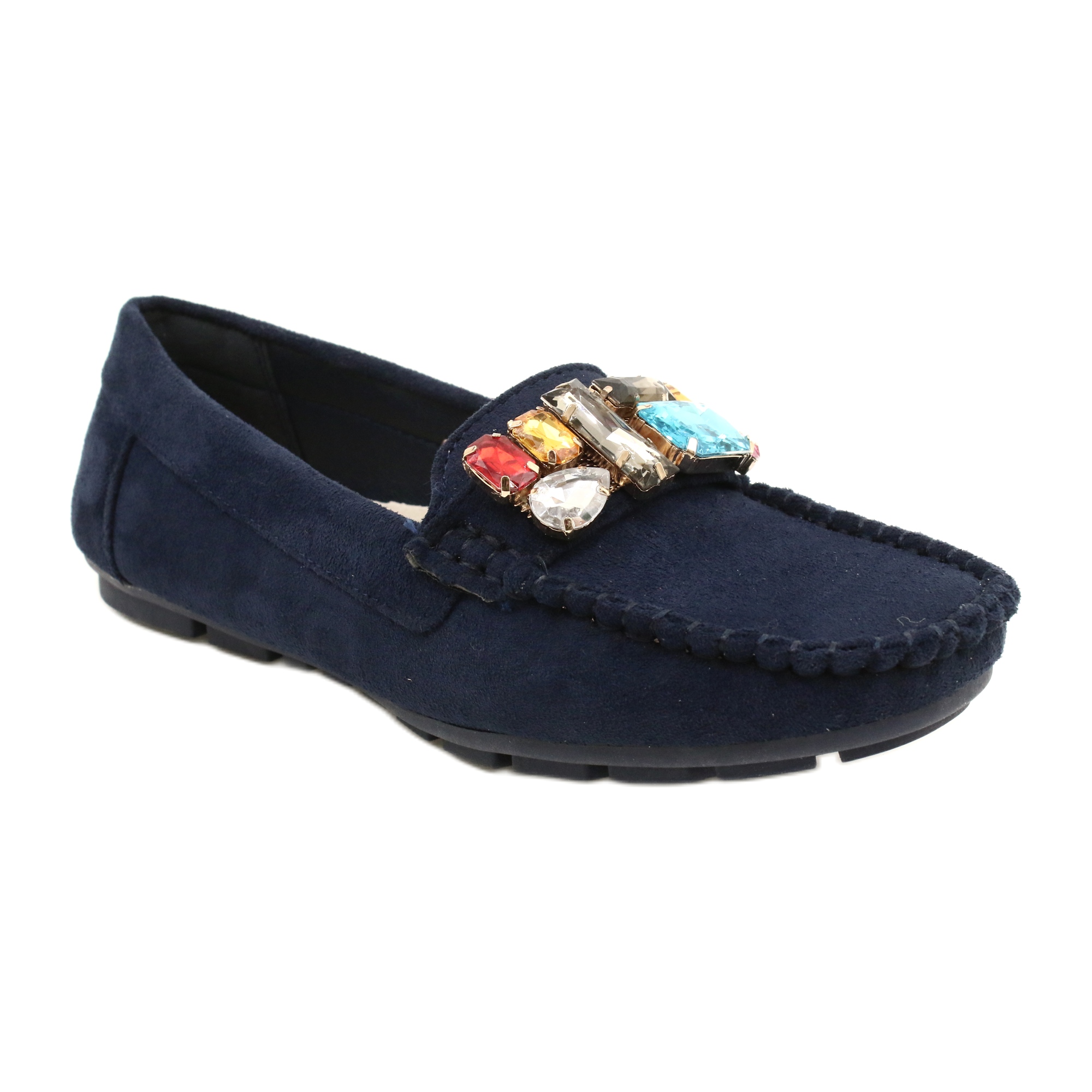 Détails: Evento Mocassins confortables en daim bleu marine avec pierres