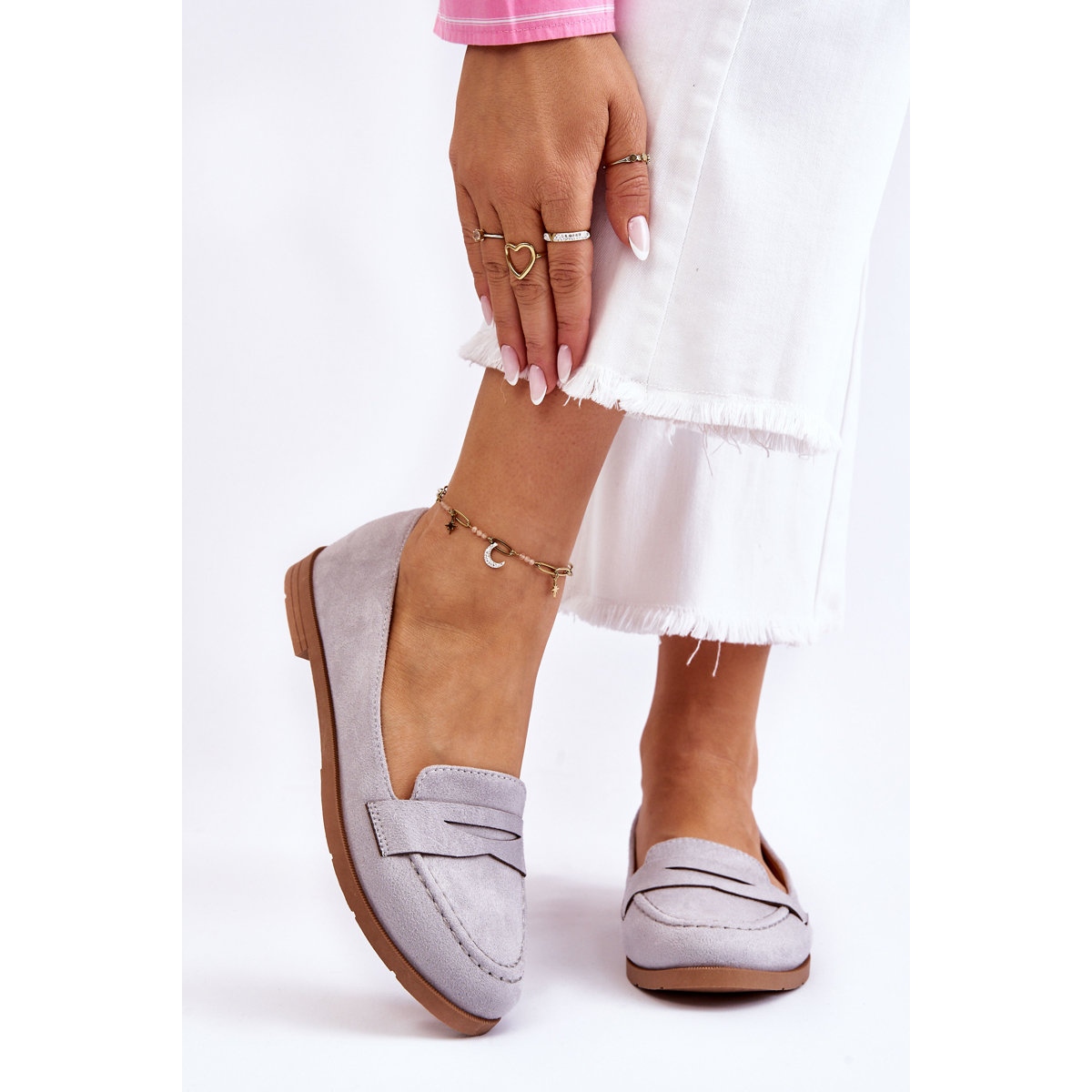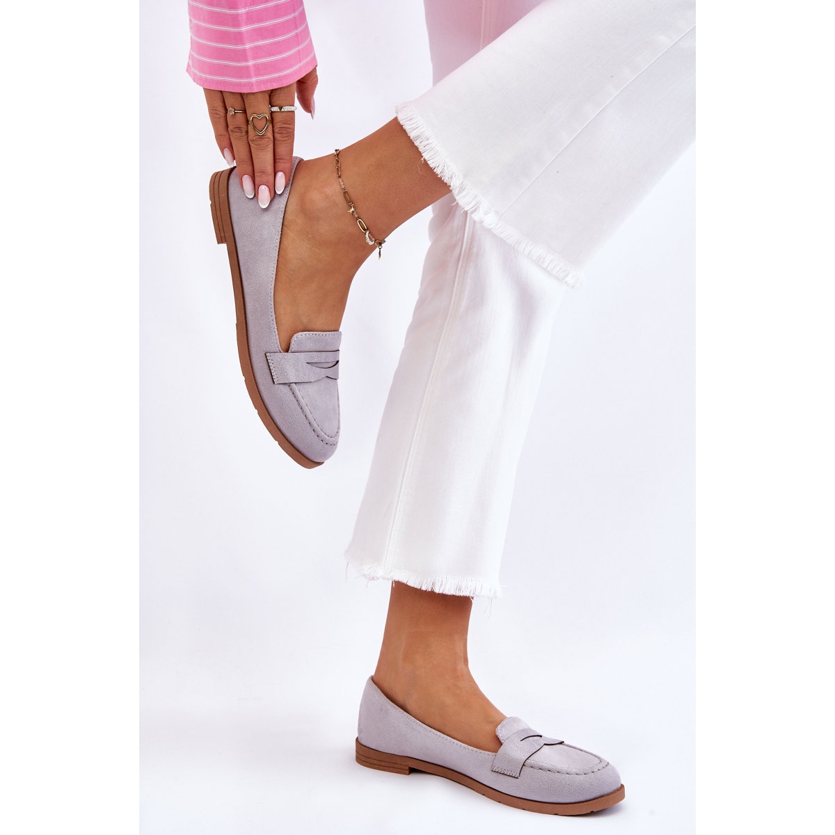 Montés sur un talon plat de 1,5 cm et une tige supérieure de 6 cm, ces mocassins offrent stabilité et maintien. Grâce à leur coloris gris universel, ils s'intégreront parfaitement dans de nombreux styles, aussi bien décontractés que plus élégants.