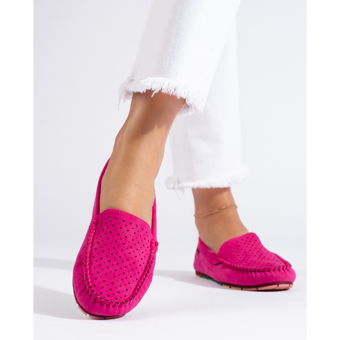 Ces mocassins à enfiler sont dotés d'un contrefort de talon fermé exceptionnellement doux qui assure un confort tout au long de la journée. Le matériau extérieur est en cuir suédé écologique d'une délicate couleur rose, ajoutant subtilité et charme féminin, s'adaptant parfaitement aux différentes nuances de la garde-robe.