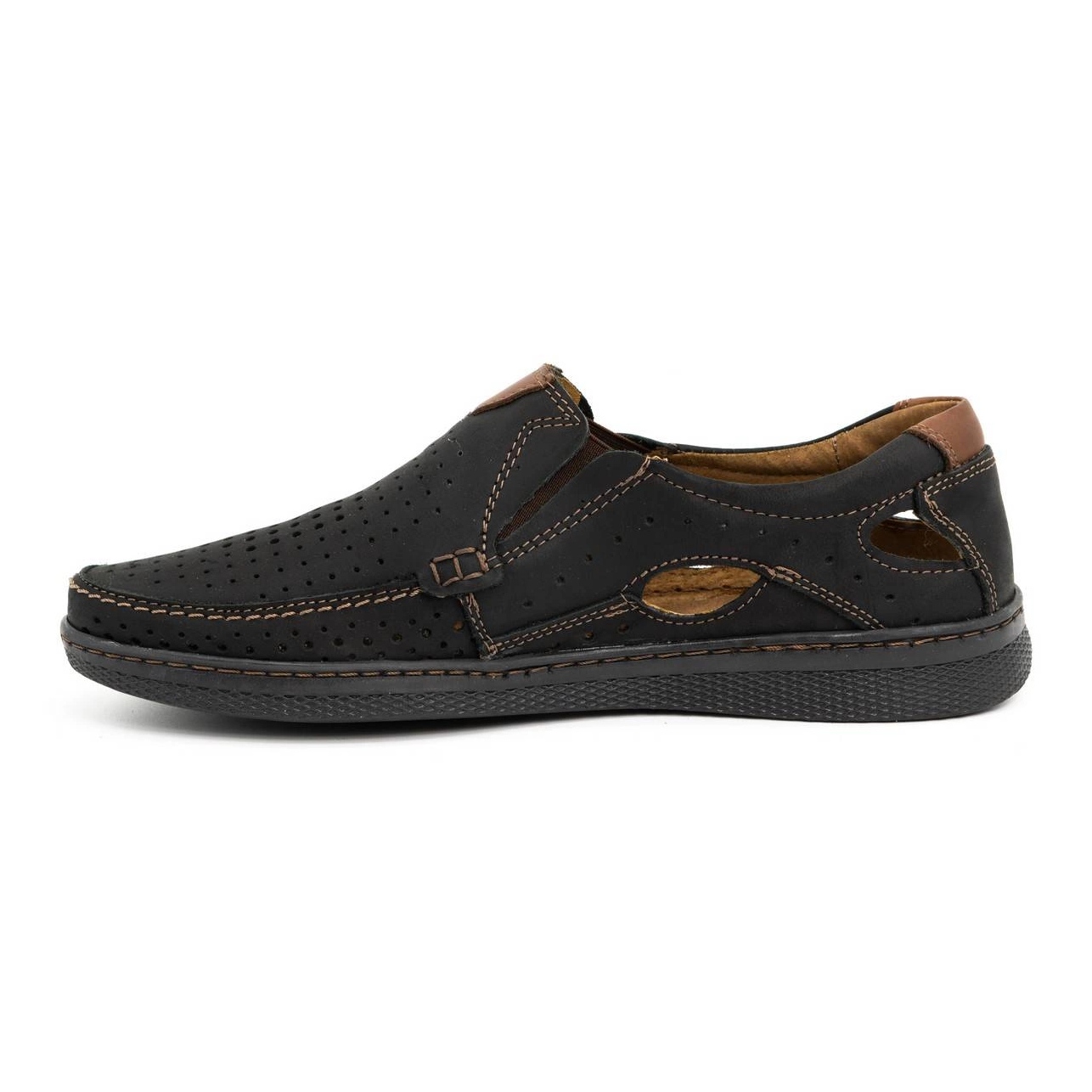 Classic Olivier 937MP est un incontournable pour les jours plus chauds. Il est entièrement fait de cuir naturel - à la fois la tige et l'insert - offrent une excellente circulation d'air, ce qui limite les pieds transpirant même à des températures élevées. La couleur noire universelle de la tige combinée avec une semelle brune et synthétique crée un look élégant mais libre, idéal pour les pantalons en lin et autres styles décontractés d'été.