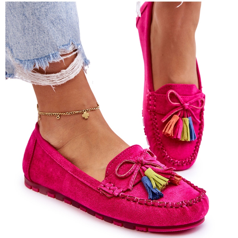 Détails: PS1 Mocassins Daim Noeud Et Franges Fuchsia Dorine rose