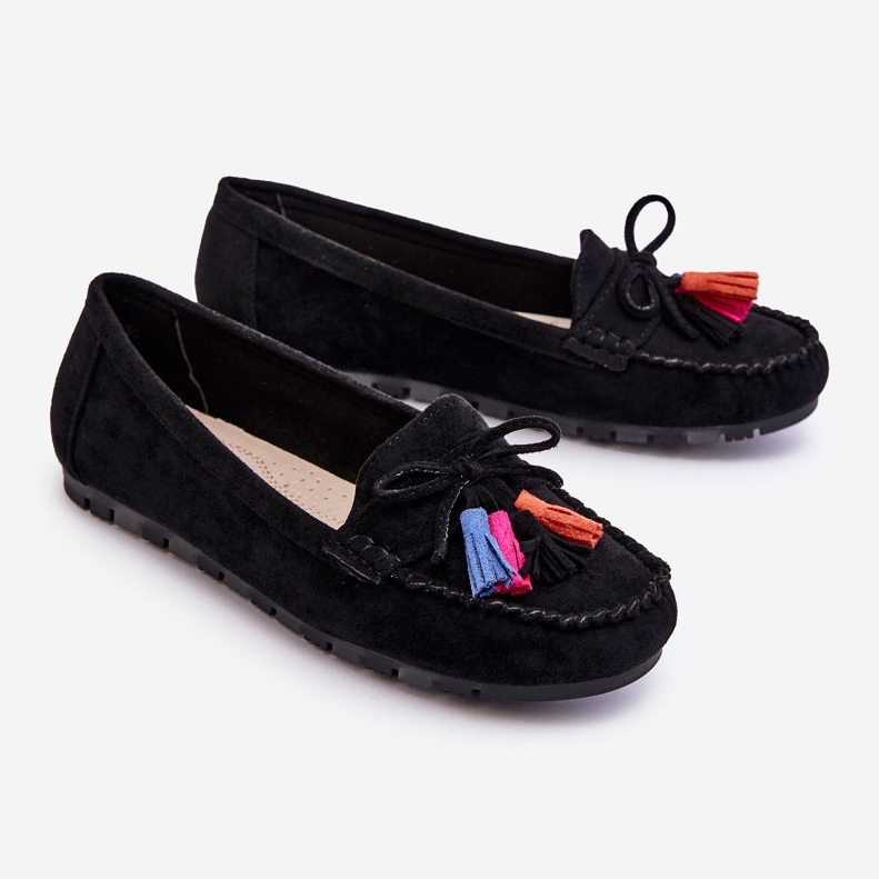 PS1 Mocassins Daim Noeud Et Pompons Noir Dorine
