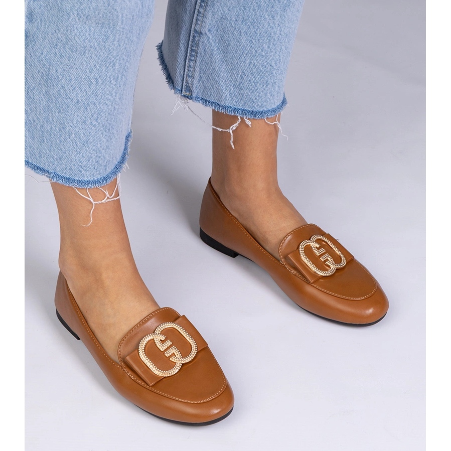 Détails: Mocassins de femmes brunes avec une décoration dorée