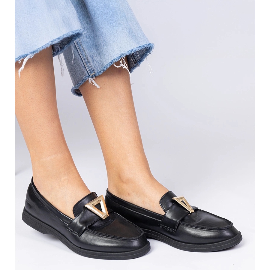 Détails: Mocassins de femmes noires avec une décoration élégante