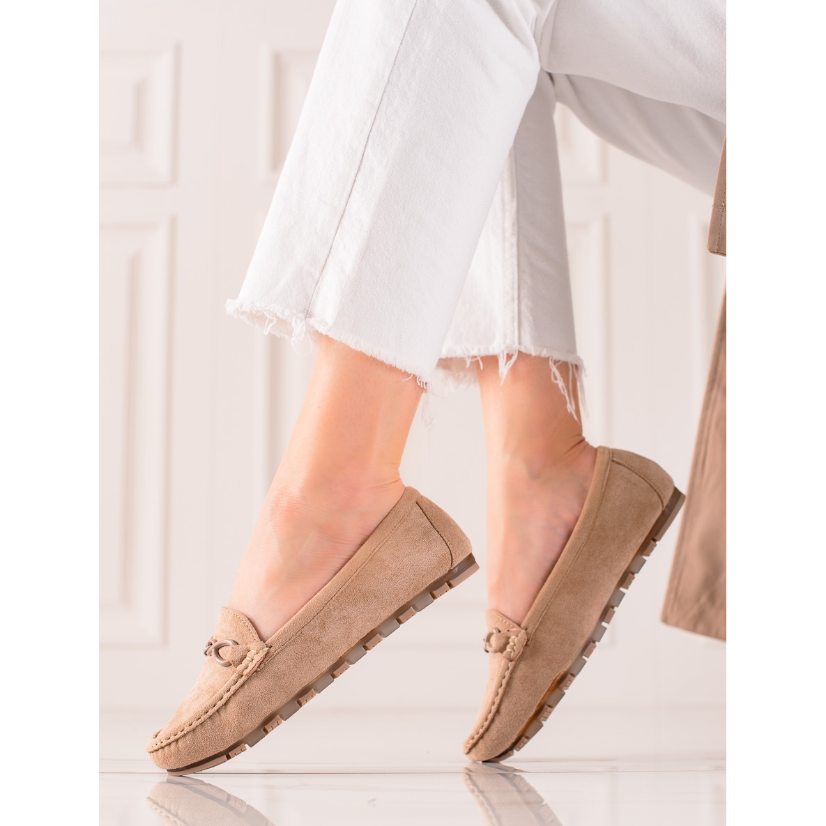 Fabriqués en imitation daim de haute qualité, les mocassins sont non seulement esthétiques, mais également durables. L'intérieur des chaussures est doublé de 50 % de cuir naturel et de 50 % de textile, ce qui garantit une ventilation et un confort adéquats pendant les activités toute la journée. Un nez rond et une semelle intérieure en cuir naturel sont des atouts supplémentaires de ce modèle.