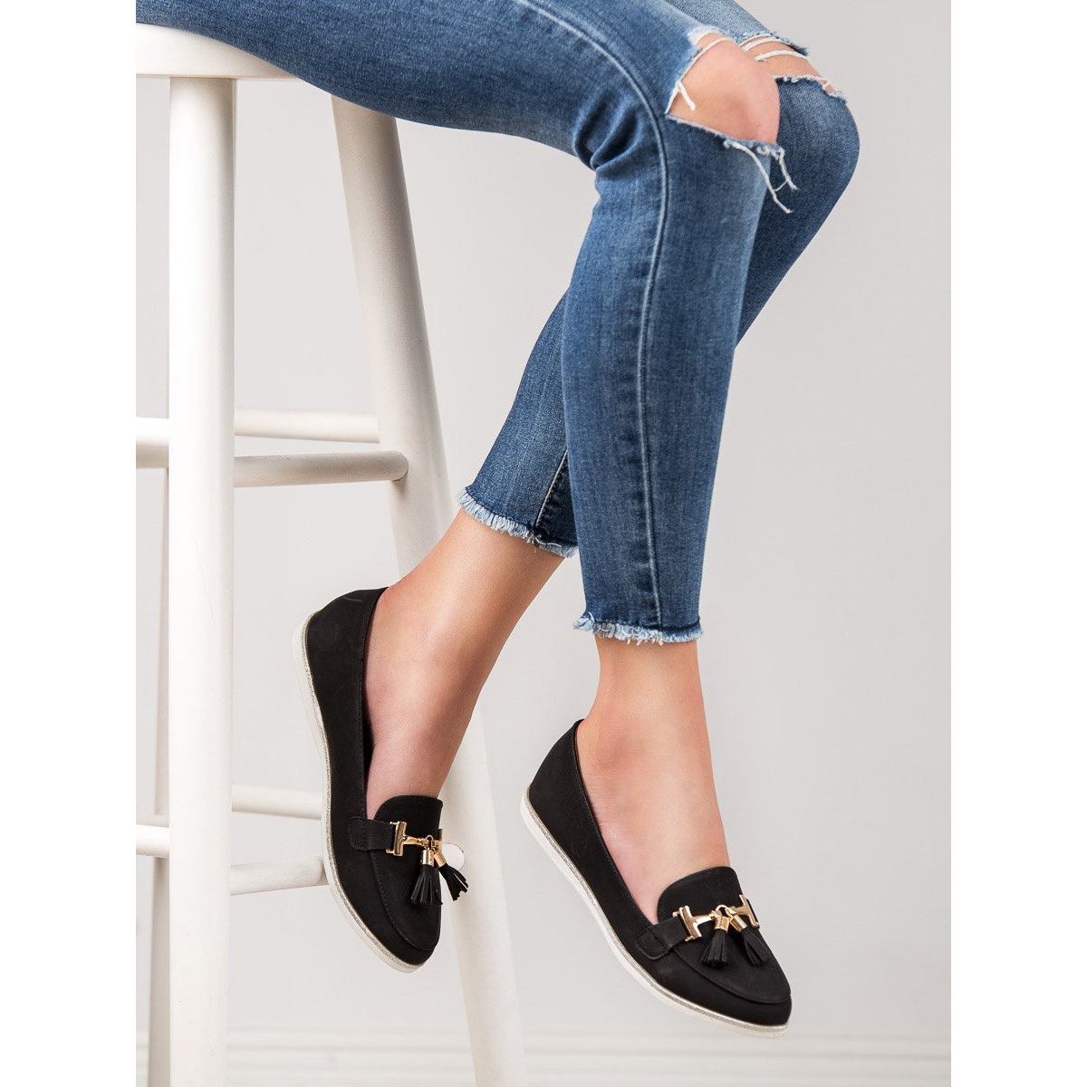 La semelle en plastique est dotée d'un profil qui assure stabilité et adhérence, même lors d'un usage quotidien intensif. Grâce à la faible hauteur de plateforme (2,0 cm), les mocassins Juliet sont légers et confortables, ce qui en fait un choix parfait pour le printemps et l'été.