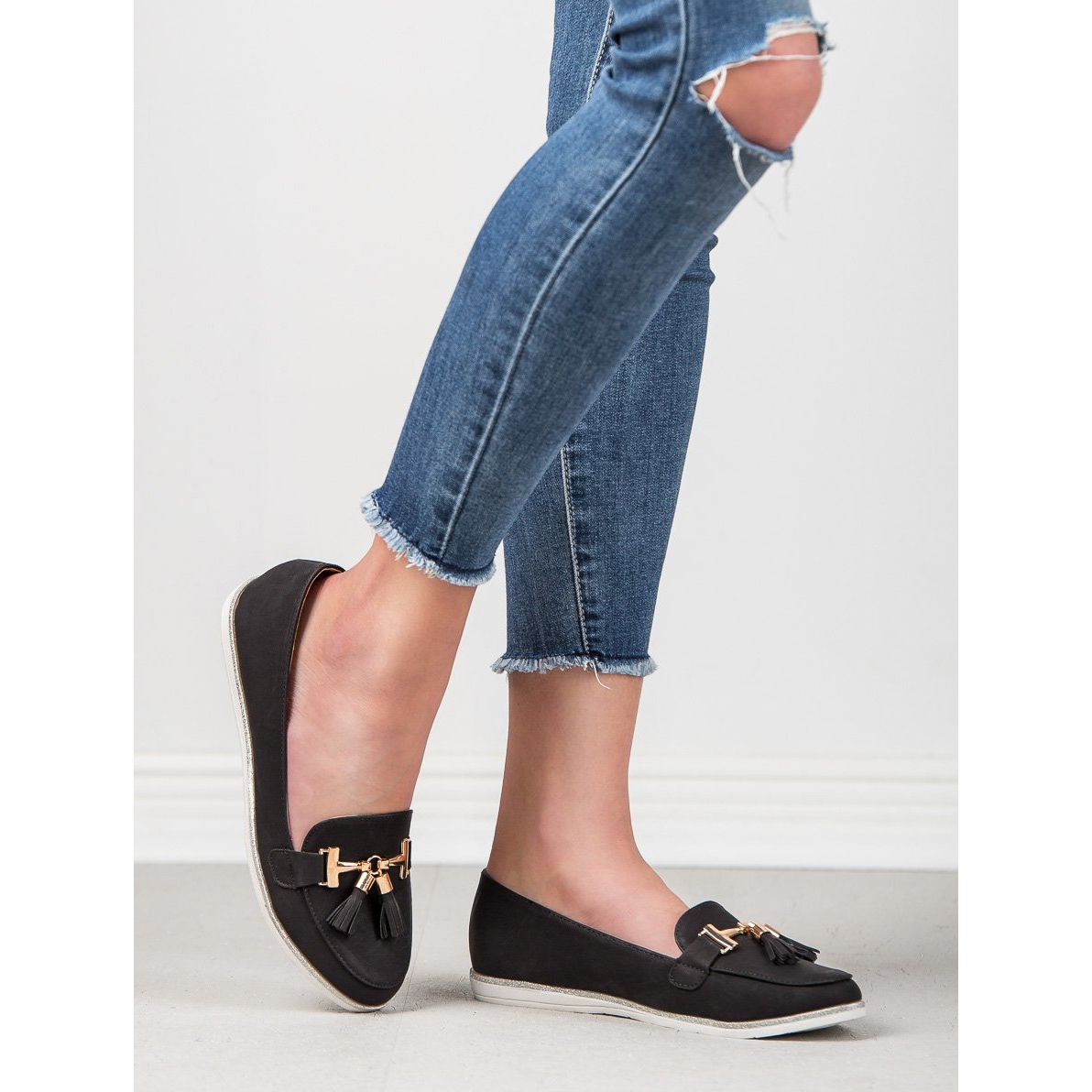Fabriqués en cuir suédé écologique de haute qualité, les mocassins offrent non seulement un aspect esthétique, mais également une durabilité et un confort de port. Un bout rond et un talon souple intégré augmentent le confort et permettent aux chaussures de s'adapter parfaitement au pied. De plus, les franges et les décorations dorées leur confèrent un charme féminin, ce qui en fait un excellent élément de style à la mode.