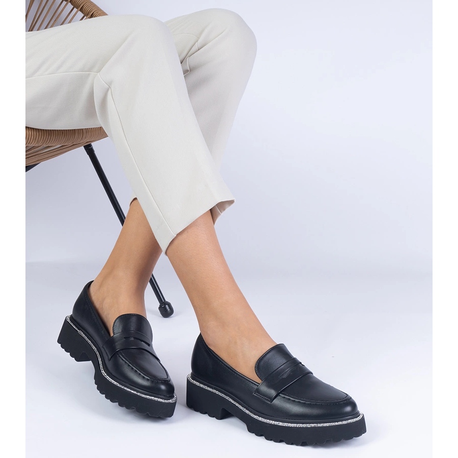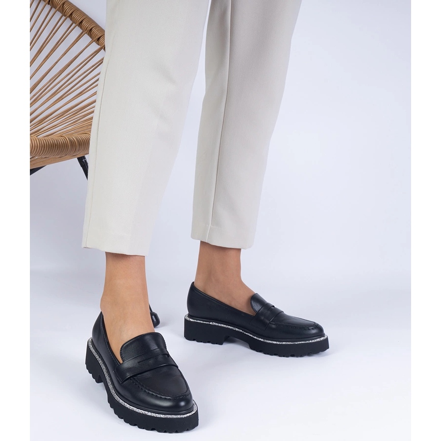 Découvrez un style unique et un confort extraordinaire avec des mocassins pour femmes noires sur un modèle épais, N24-022. Ces chaussures élégantes combinent le design moderne avec le confort, parfaitement s'adaptant aux tendances actuelles de la mode.