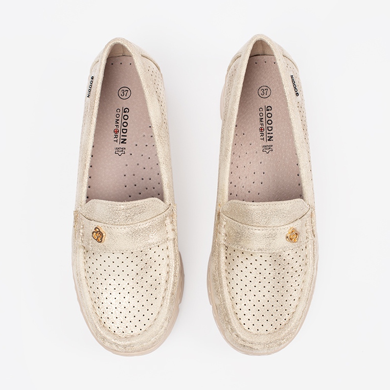 Détails: Goodin Mocassins d'or ouverte d'or avec un élément doré
