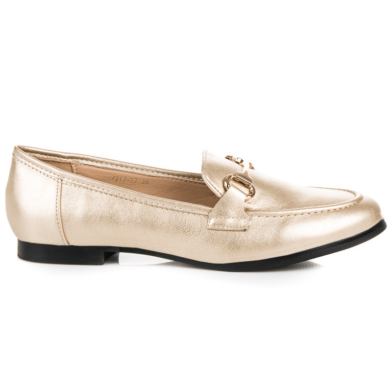 Les mocassins à enfiler dorés de Vices sont le choix parfait pour les femmes qui apprécient une combinaison de style et de confort. Fabriquées en cuir écologique de haute qualité, ces chaussures élégantes s'intègrent parfaitement dans les dernières tendances de la mode, et leur couleur dorée ajoute un éclat unique à n'importe quel style.