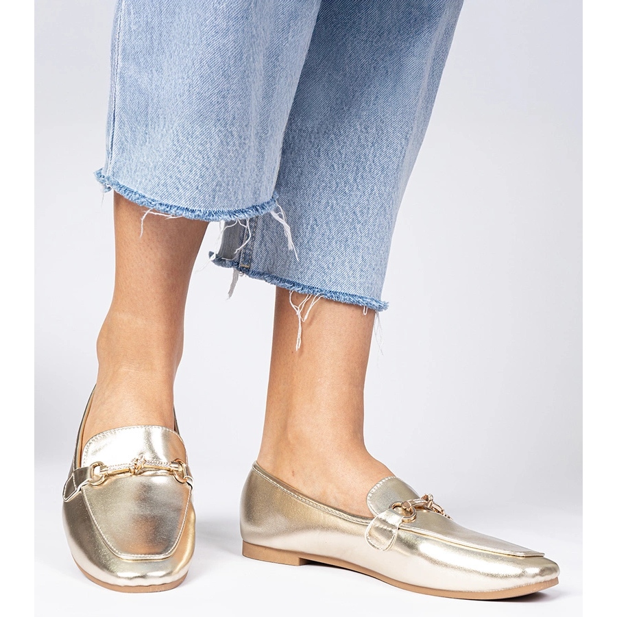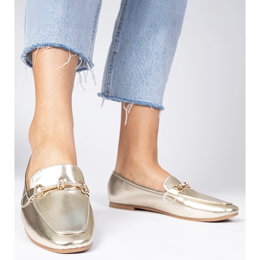 Inna marka Mocassins élégants dorés avec une décoration dorée et des zircons d'or