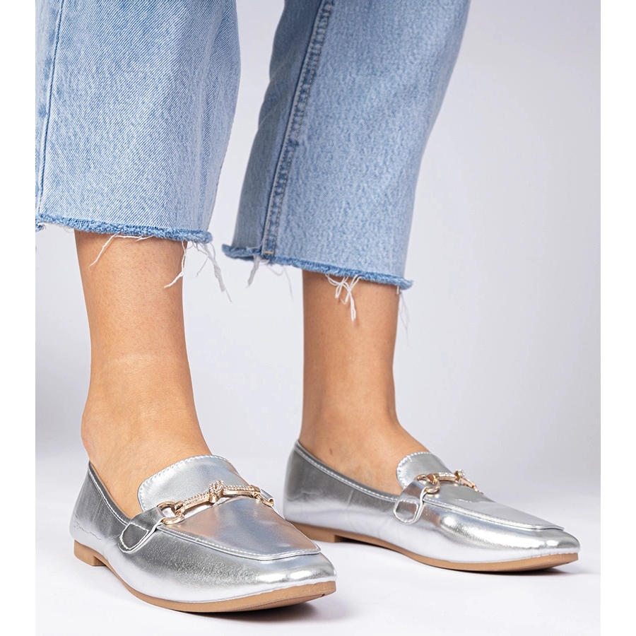 Choisissez des mocassins en argent avec une décoration dorée et découvrez de nouvelles opportunités dans votre style quotidien! Ces chaussures uniques combinent parfaitement l'élégance et le confort, étant le choix parfait pour chaque femme moderne. N'attendez pas, introduisez l'élégance à votre garde-robe aujourd'hui!