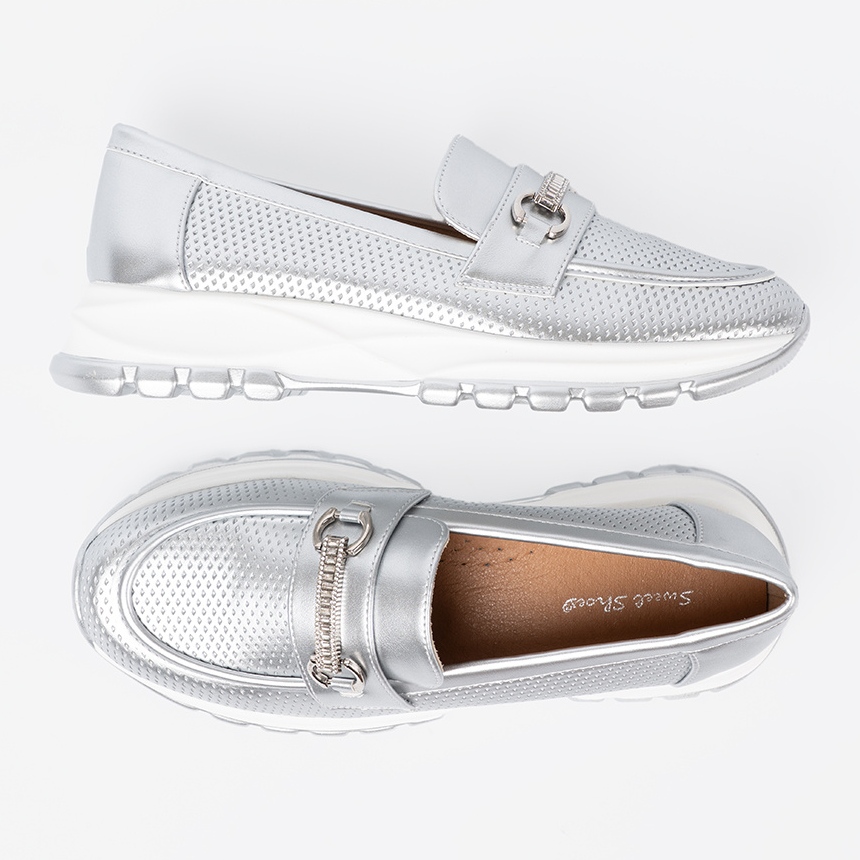 Découvrez l'élégance dans le style quotidien grâce aux mocassins d'argent du fabricant de Shelvt. Ces chaussures uniques combinent un look classique avec des accents modernes, ce qui en fait le choix parfait pour chaque occasion. Fabriquée en imitation de la peau de haute qualité, la partie extérieure et intérieure de la chaussure est une garantie de commodité et de durabilité.