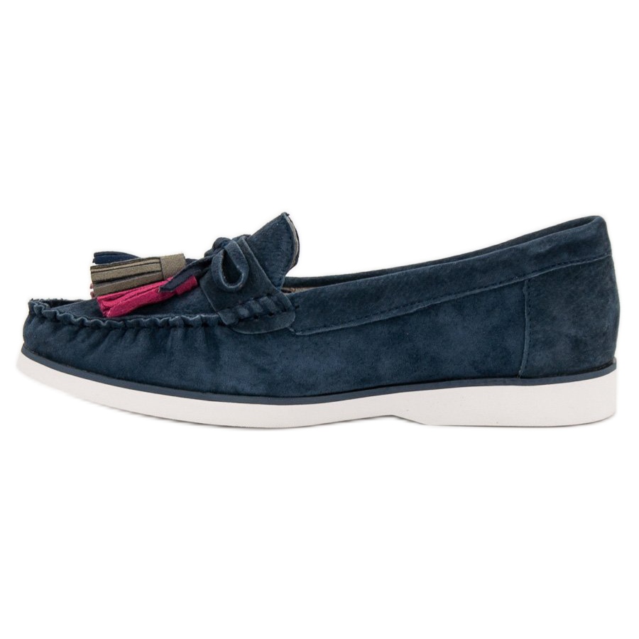 Fabriqués en cuir naturel de haute qualité, les mocassins assurent un excellent ajustement et une excellente durabilité. Le modèle se caractérise par une fermeture à enfiler qui permet d'enfiler et de retirer les chaussures rapidement et facilement. Un avantage supplémentaire réside dans les franges colorées qui leur confèrent un caractère unique et attirent l'attention.
