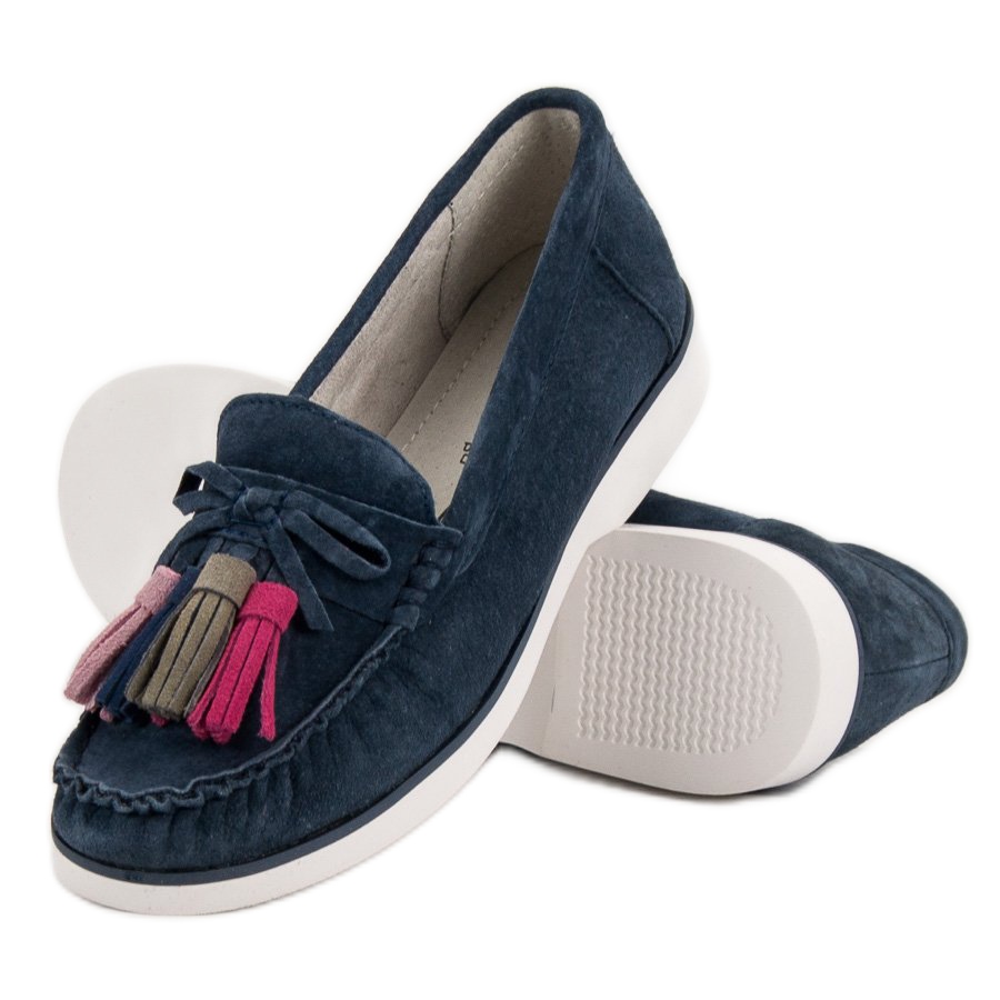 Les mocassins en cuir à franges Filippo en bleu sont un choix parfait pour toutes les femmes qui souhaitent allier élégance et confort au quotidien. Ces chaussures phénoménales pour femmes se distinguent non seulement par leur design tendance, mais aussi par leur incroyable confort de port.