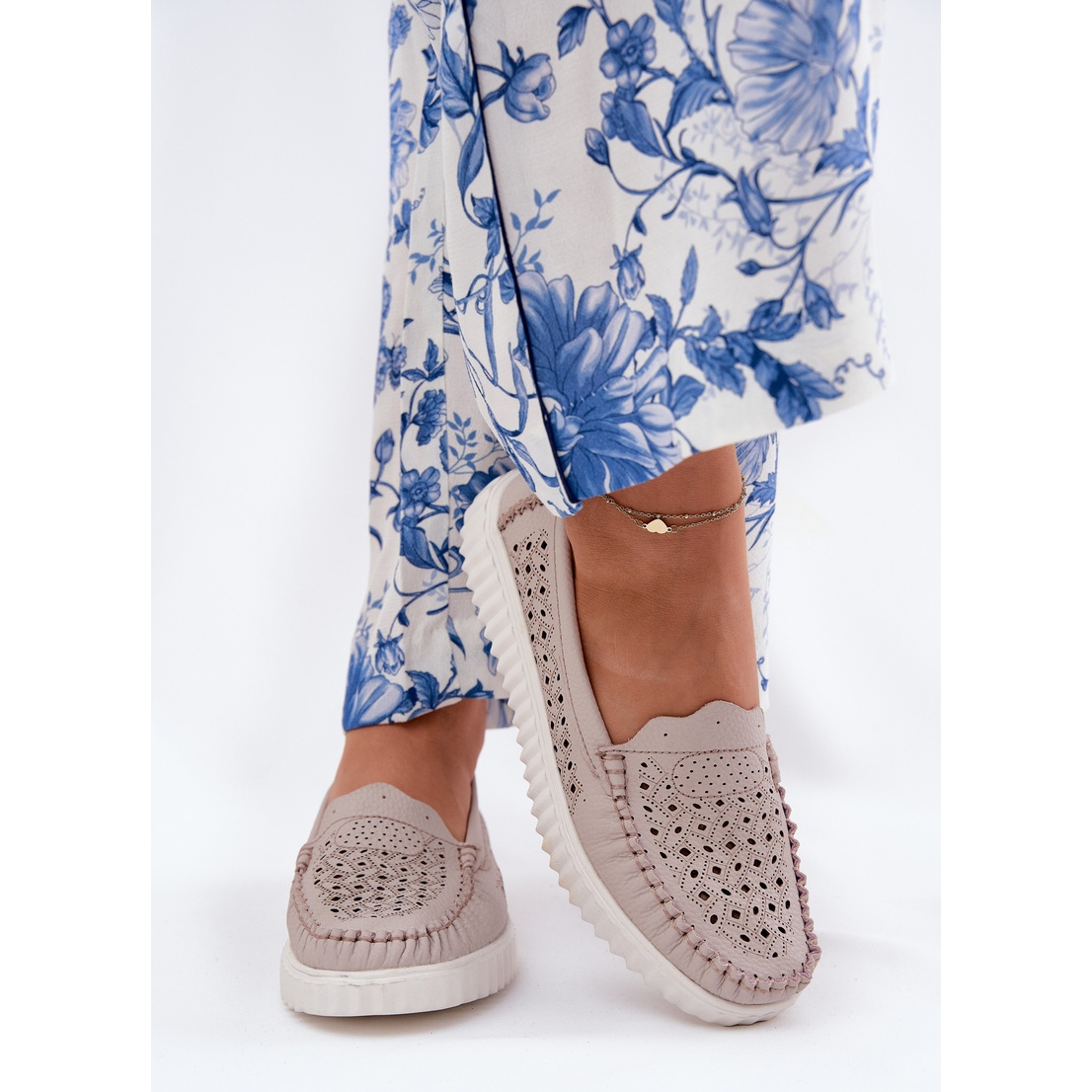 Vinceza Vinceza Mocassins en cuir féminin avec un motif ouvert Vincez 88028 beige