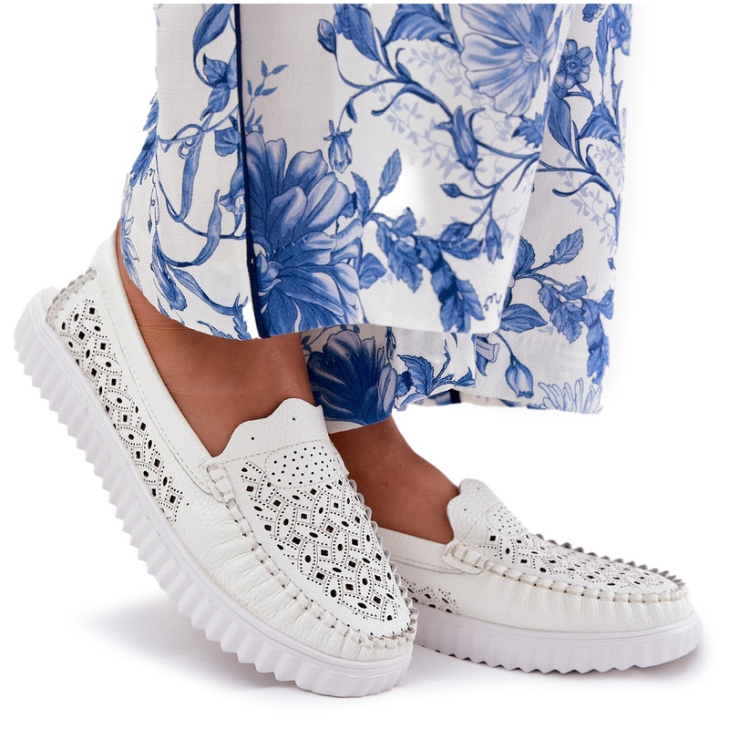 Détails: Vinceza Mocassins en cuir féminin avec un motif ouvert Vincez 88028 blanc blanche