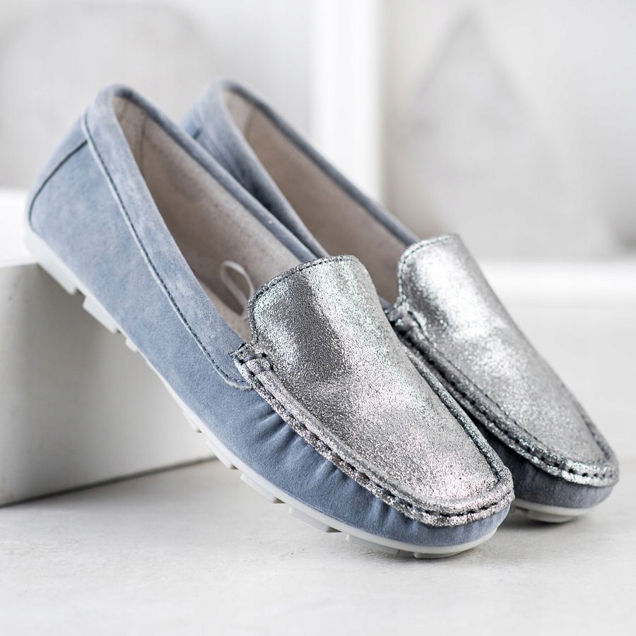 Les mocassins ont un talon souple et intégré, qui offre un soutien adéquat au pied. Grâce à un talon plat de 1 cm de haut et une semelle synthétique au profil délicat, elles sont extrêmement confortables et stables, vous permettant de bouger librement tout au long de la journée. L'intérieur des chaussures est doublé de matière textile et de cuir naturel, ce qui augmente encore le confort de port.