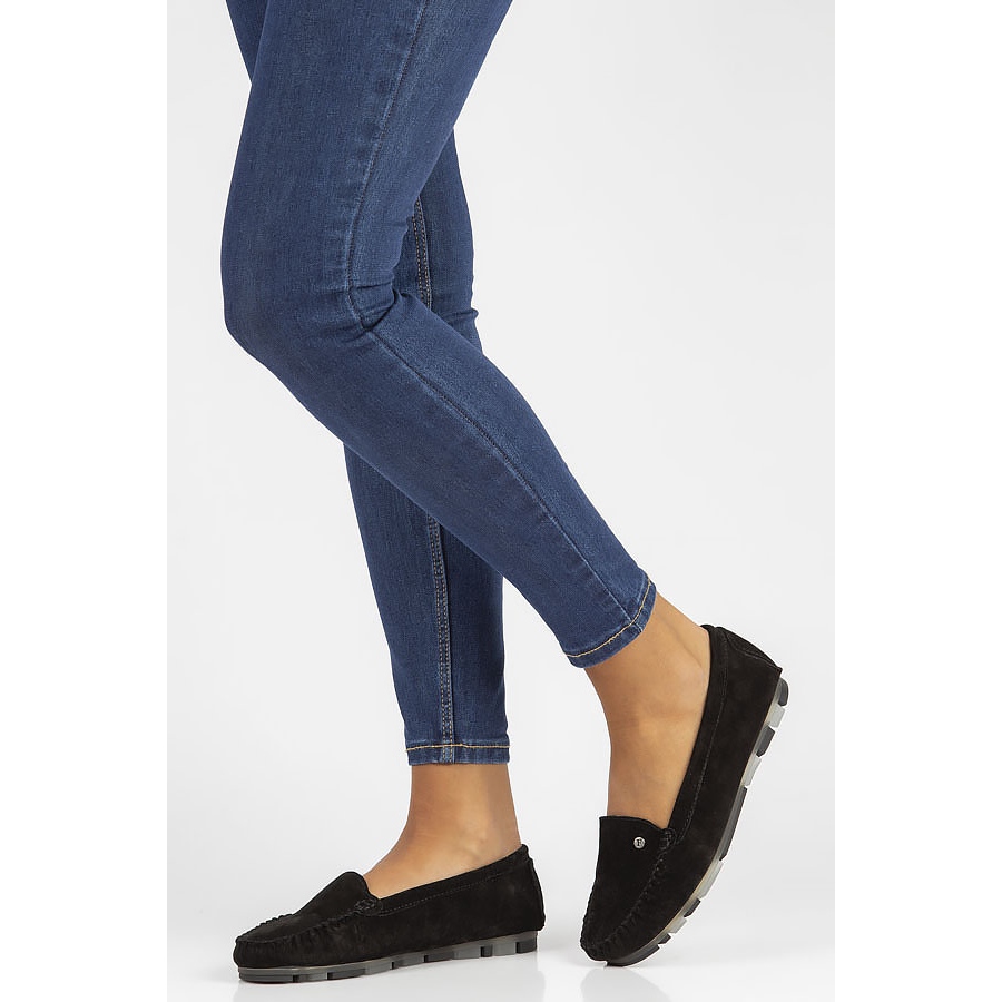 Les mocassins ont un bout rond, ce qui ajoute de la subtilité, et grâce à la fermeture à enfiler, ils sont extrêmement faciles à enfiler. Le talon plat de 1 cm de haut assure un port confortable, parfait pour les longues journées de travail ou les promenades en ville. La hauteur supérieure de 5,5 cm permet aux mocassins de s'adapter parfaitement à différents styles.