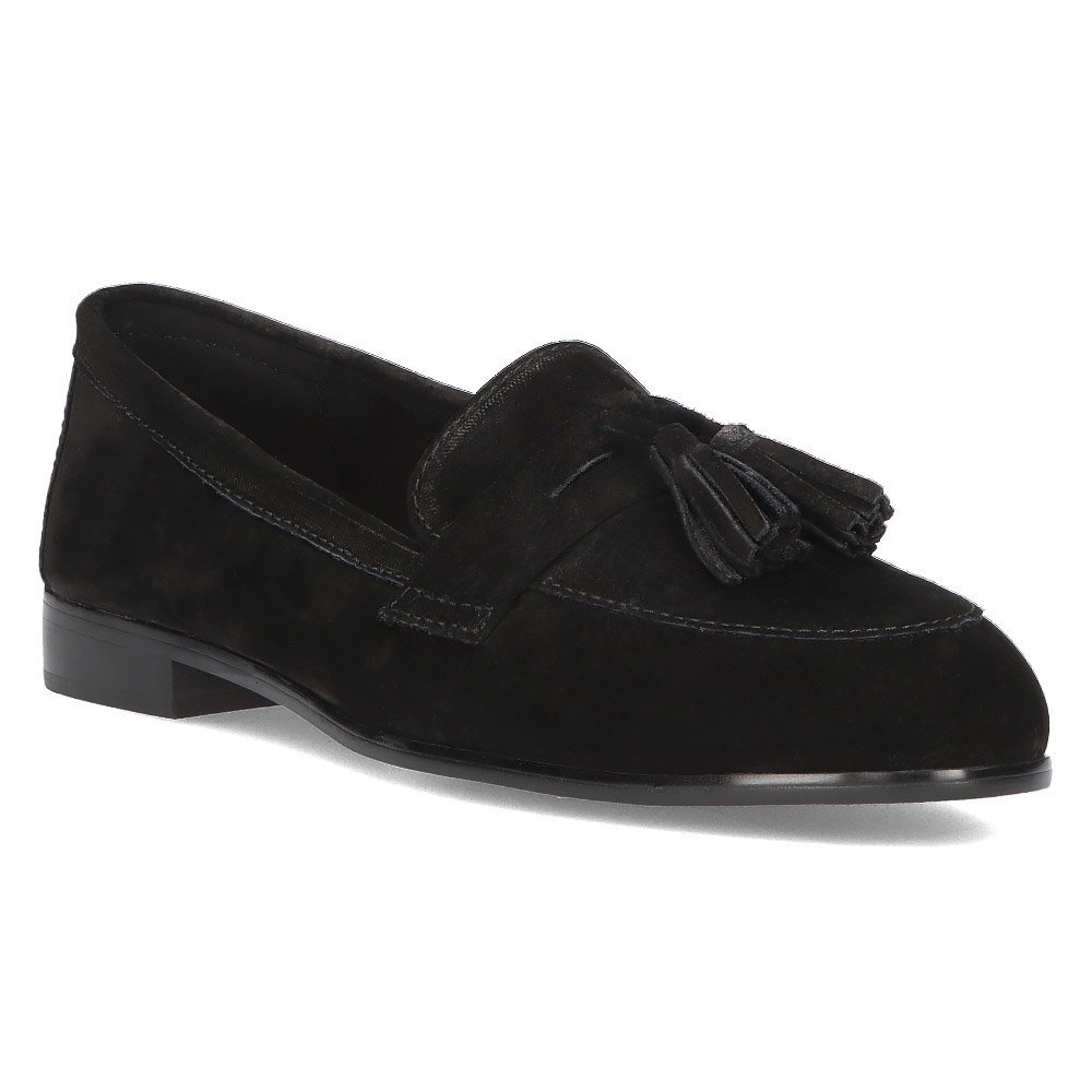Les mocassins ont un bout rond et un talon plat, ce qui en fait une solution parfaite pour diverses occasions, du travail aux réunions sociales. Ils se caractérisent par un design minimaliste dans une couleur noire classique, ce qui les rend faciles à combiner avec de nombreux styles. Les franges ajoutent de l'originalité et du charme féminin.