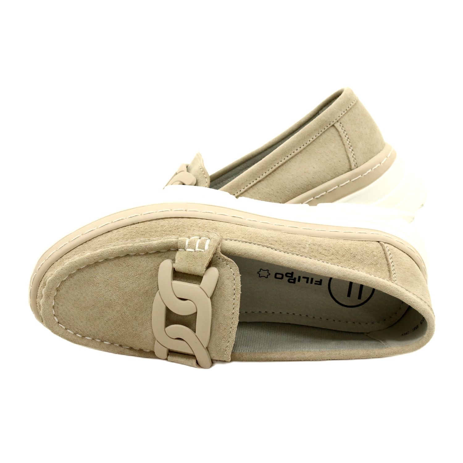 Les mocassins en cuir Filippo DP4552/23 beiges sont une proposition parfaite pour les prochaines journées de printemps et d'été. Ces chaussures élégantes allient confort et style, ce qui en fait un choix parfait pour toute femme moderne. Fabriqués en cuir naturel, tant à l'extérieur qu'à l'intérieur, ils garantissent durabilité et confort de port.