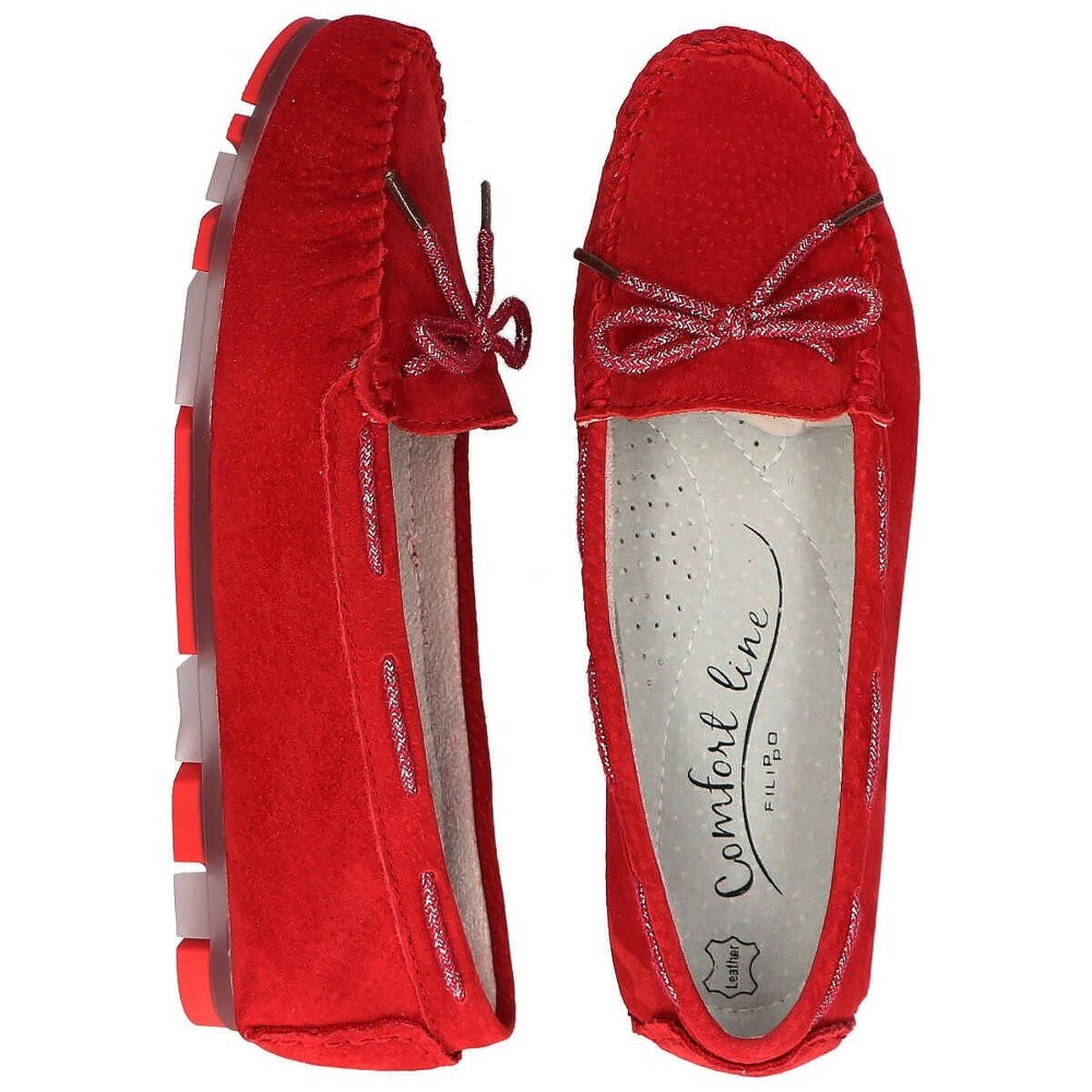 Ajoutez un peu de couleur à votre garde-robe de tous les jours avec les mocassins en cuir Filippo DP1203/20 Rd dans une teinte rouge juteuse. Ces chaussures élégantes pour femmes sont un choix idéal pour les femmes qui apprécient le confort et un look tendance. Fabriqués en cuir naturel de haute qualité, ils offrent non seulement un look élégant, mais également une durabilité et un confort d'utilisation.