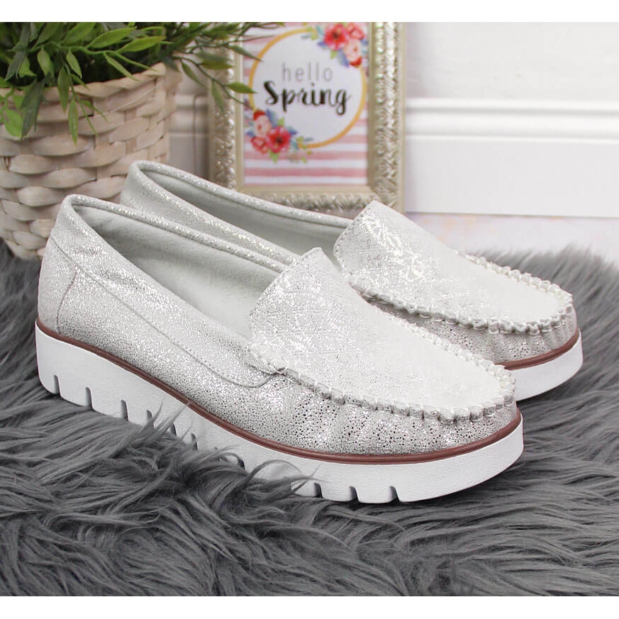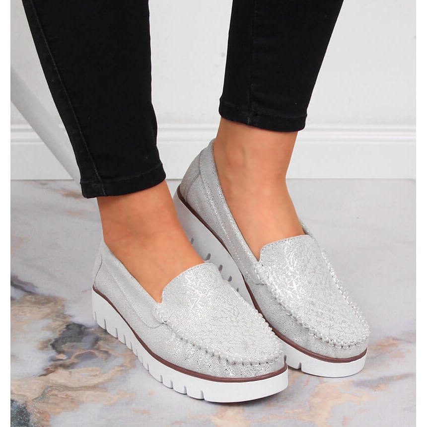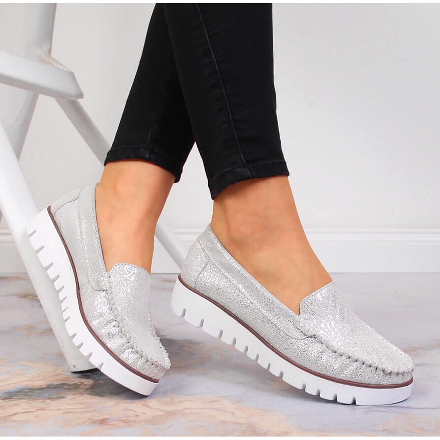 Détails: Mocassins en cuir sur une plate-forme Filippo argentée