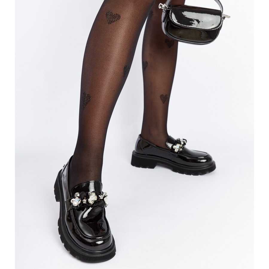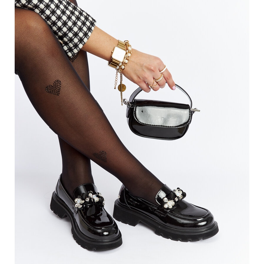 Les mocassins en cuir laqué noir GOE NN2N4200 sont un modèle unique qui allie élégance et style moderne. Leur bout rond donne un caractère subtil et la finition laquée donne aux chaussures un aspect phénoménal, réfléchissant la lumière et attirant l'attention. Un avantage supplémentaire sont les strass décoratifs, qui ajoutent de l'élégance et les rendent parfaits pour diverses occasions.