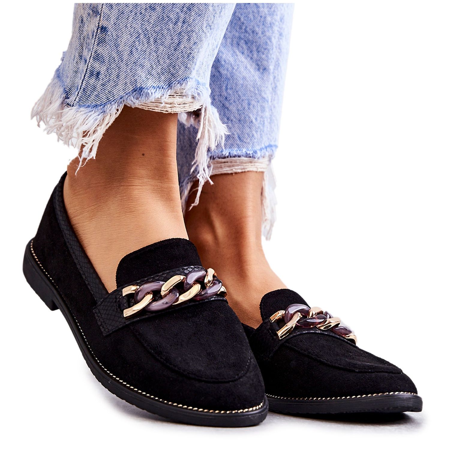 - Modèle: Mocassins en suède avec chaîne