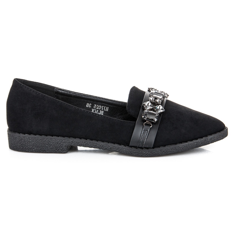 Les mocassins en daim noir avec cristaux sont le complément parfait à différents styles, à la fois décontractés et plus élégants. Les détails élégants sous forme de cristaux attirent l'attention et complètent parfaitement toute garde-robe. Choisissez Sweet Shoes et profitez de la combinaison de confort et de style unique pour chaque occasion !