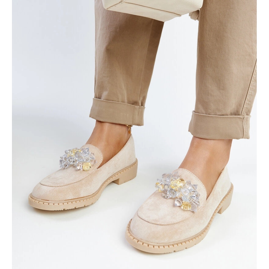 Détails: Mocassins en daim beige clair avec cristaux Zemzem