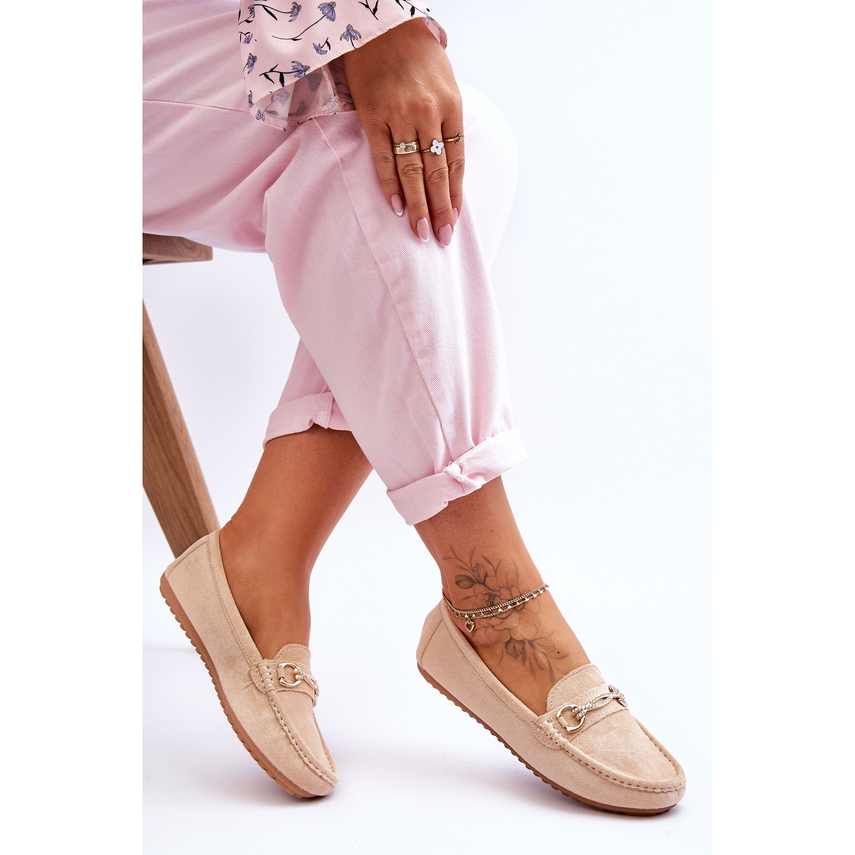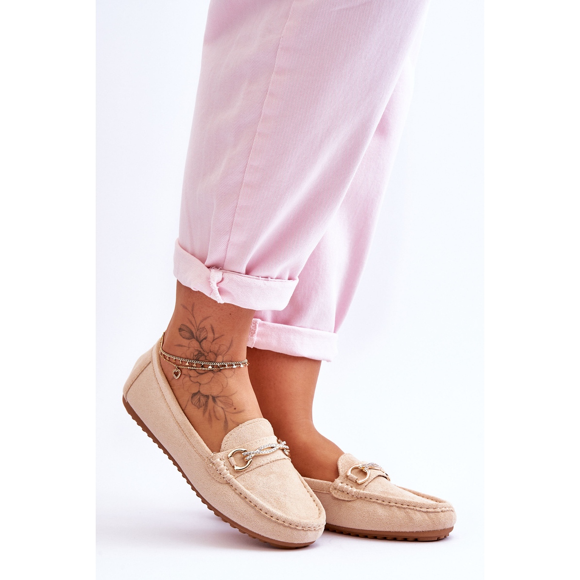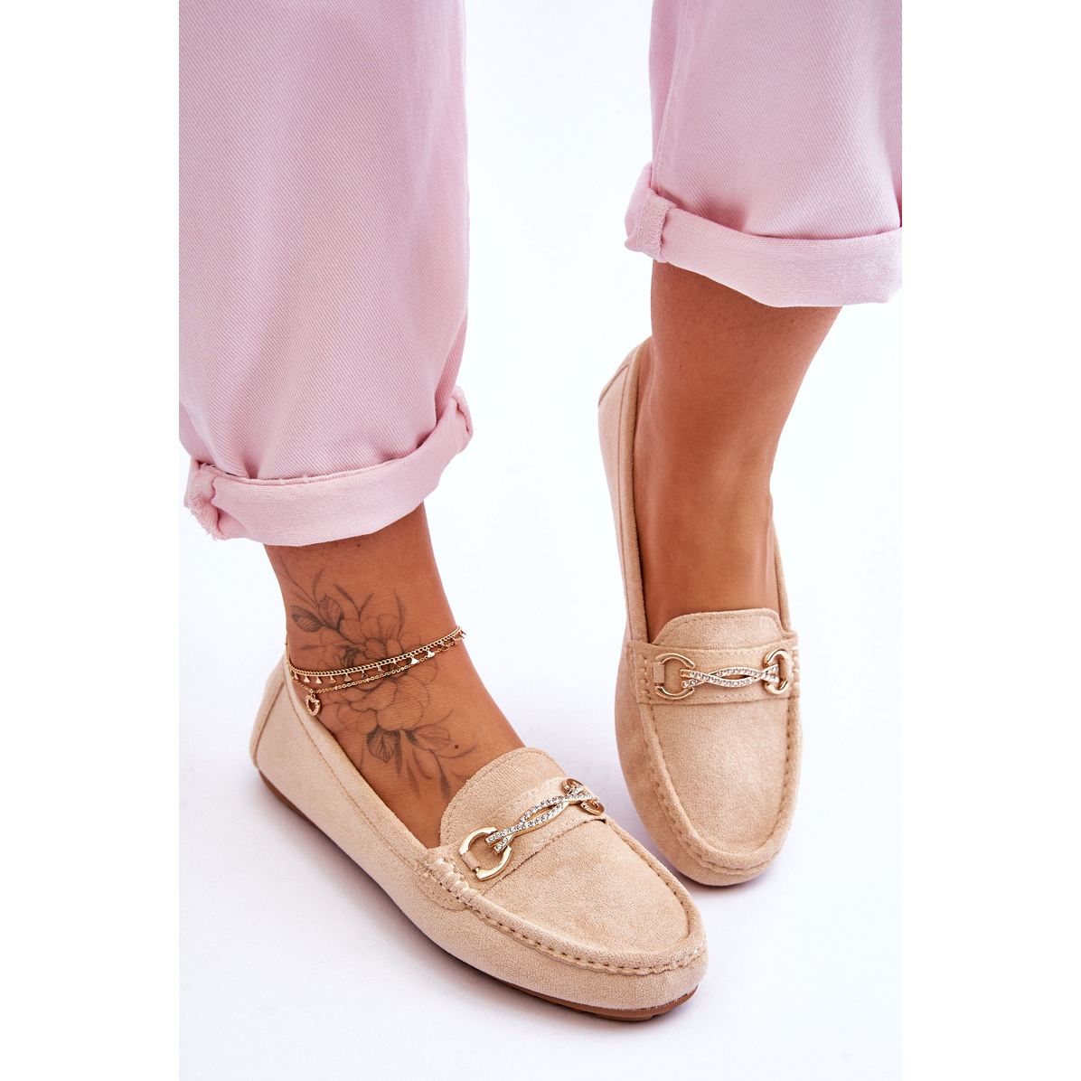 Détails: Mocassins en daim classiques avec embellissements Amera beiges