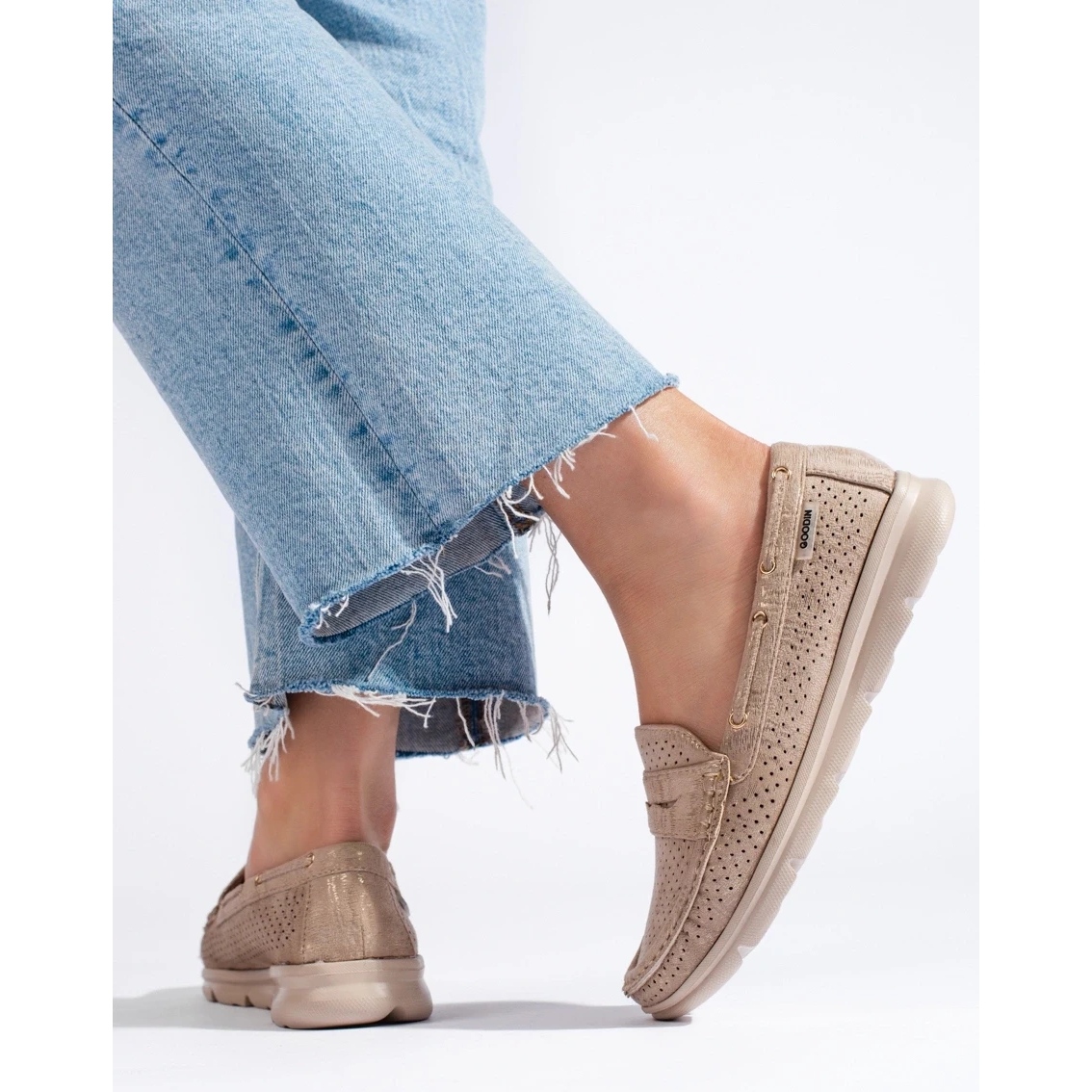Détails: Mocassins en daim doré Shelovet, femmes beige