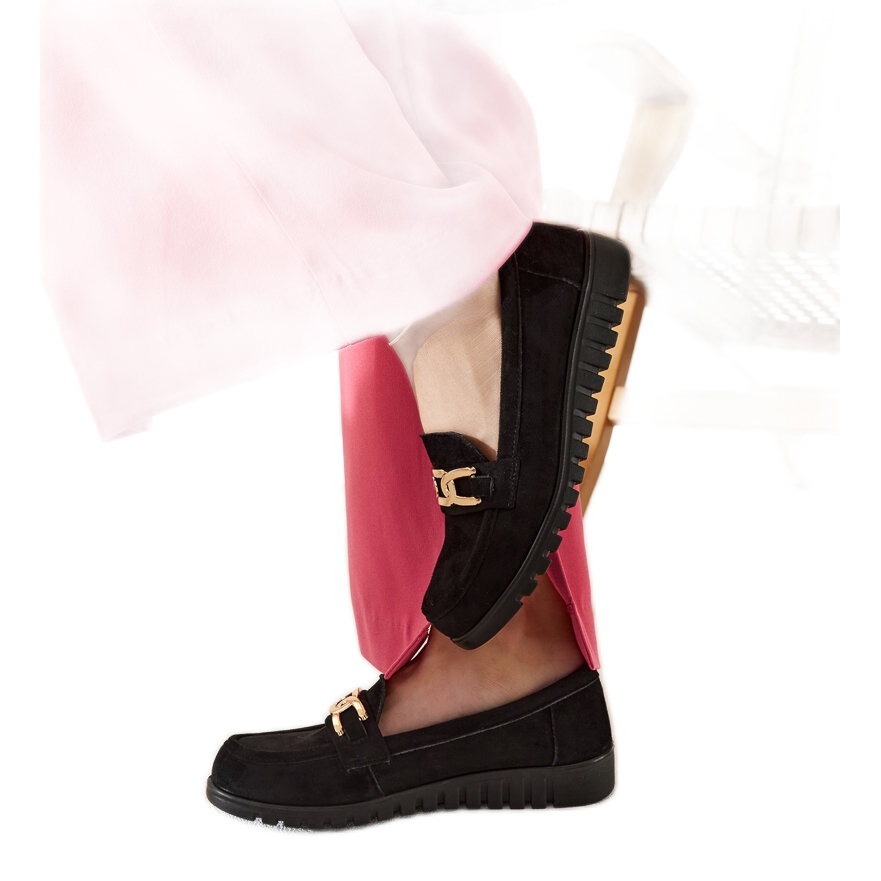 Pour résumer, les mocassins en daim noir avec les sardes pour se boucler dans le placard de chaque femme à la mode, offrant une élégance quotidienne combinée à un confort d'usure extraordinaire.