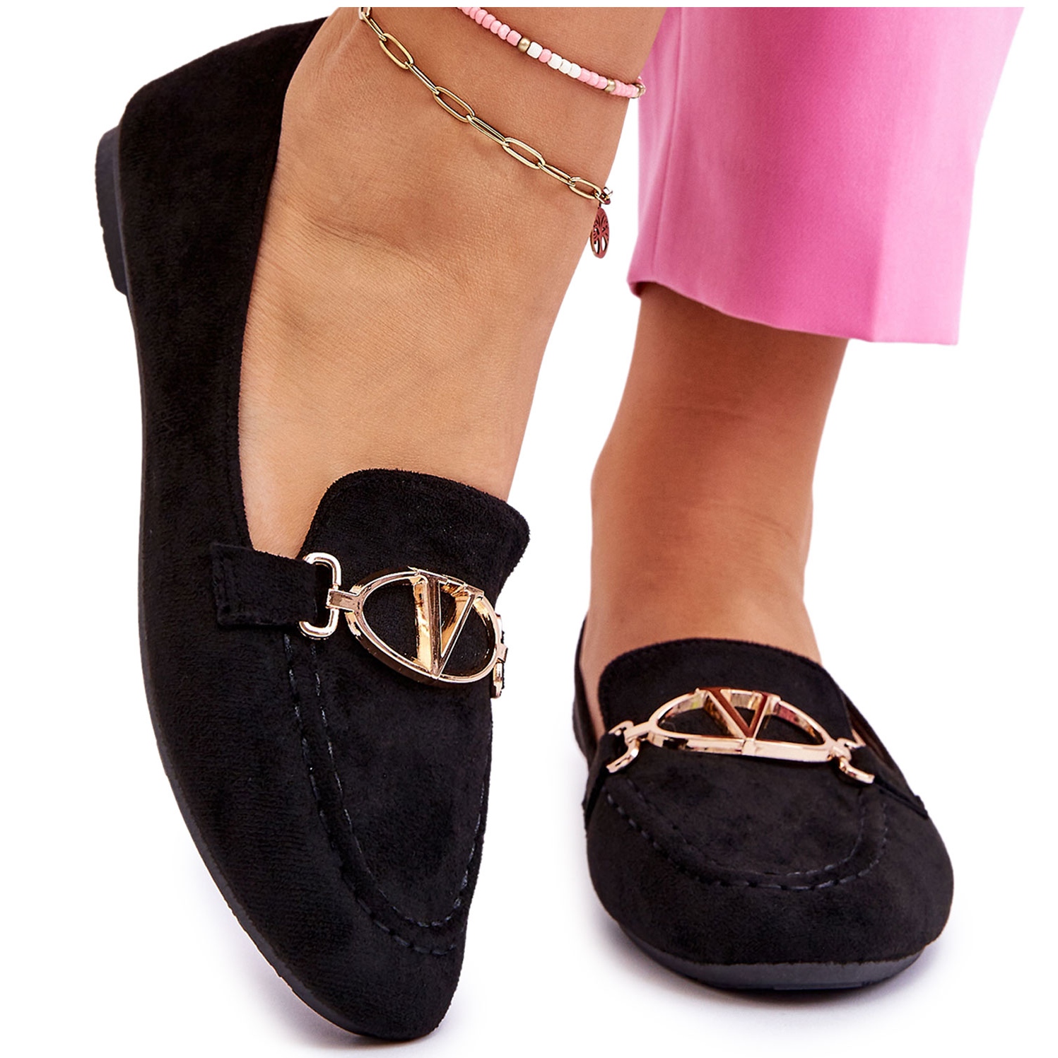 Vinceza Vinceza Mocassins en daim noir Reed avec élément décoratif le noir