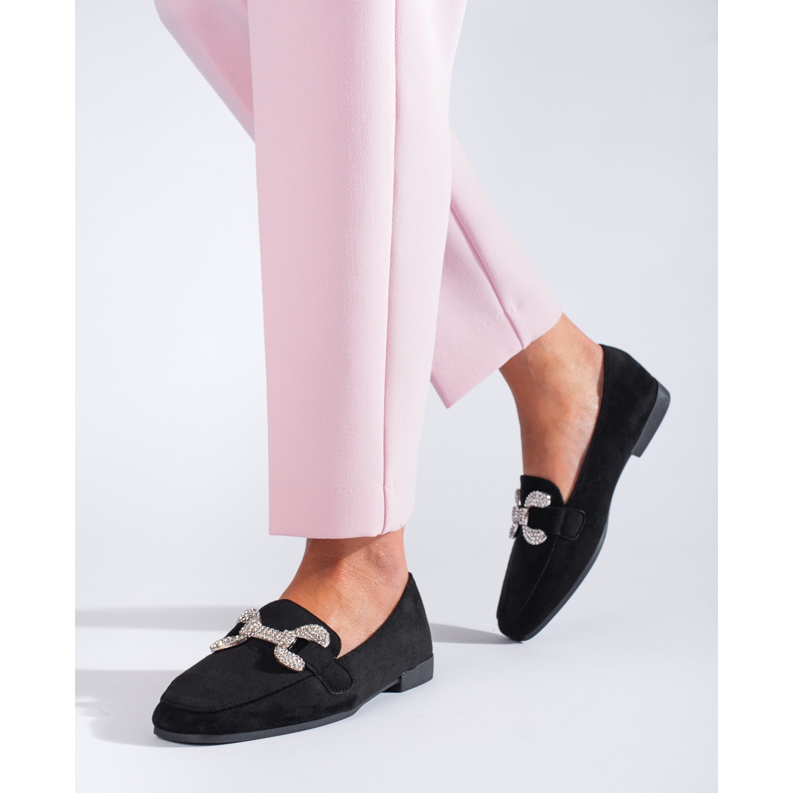 Les mocassins noirs en daim avec boucle de Shelovet sont le choix parfait pour les femmes à la recherche de chaussures élégantes et confortables au quotidien. Ces chaussures élégantes sont fabriquées en daim écologique, ce qui les rend extrêmement attrayantes et en même temps respectueuses de l'environnement.